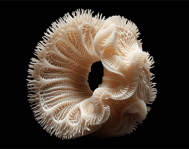 There is a dynamic interplay between research, innovation, art, and design in Amy Karle’s creative process. She employs emerging and exponential technologies, including AI, to create and envision things never possible before. In working with emergent technologies, Karle’s primary aim is to investigate potentials, and generate new forms, expressions, processes, and thinking that could not be spawned in any other way. The commitment to engage emergent technologies including AI transcends mere use; it embodies a process of discovery that crosses disciplines to spark new concepts, workflows, materials, tool development, and visions in the process. The final works stand as artifacts of this explorative journey, imbued with new aesthetics and new ways of thinking from using these new tools.